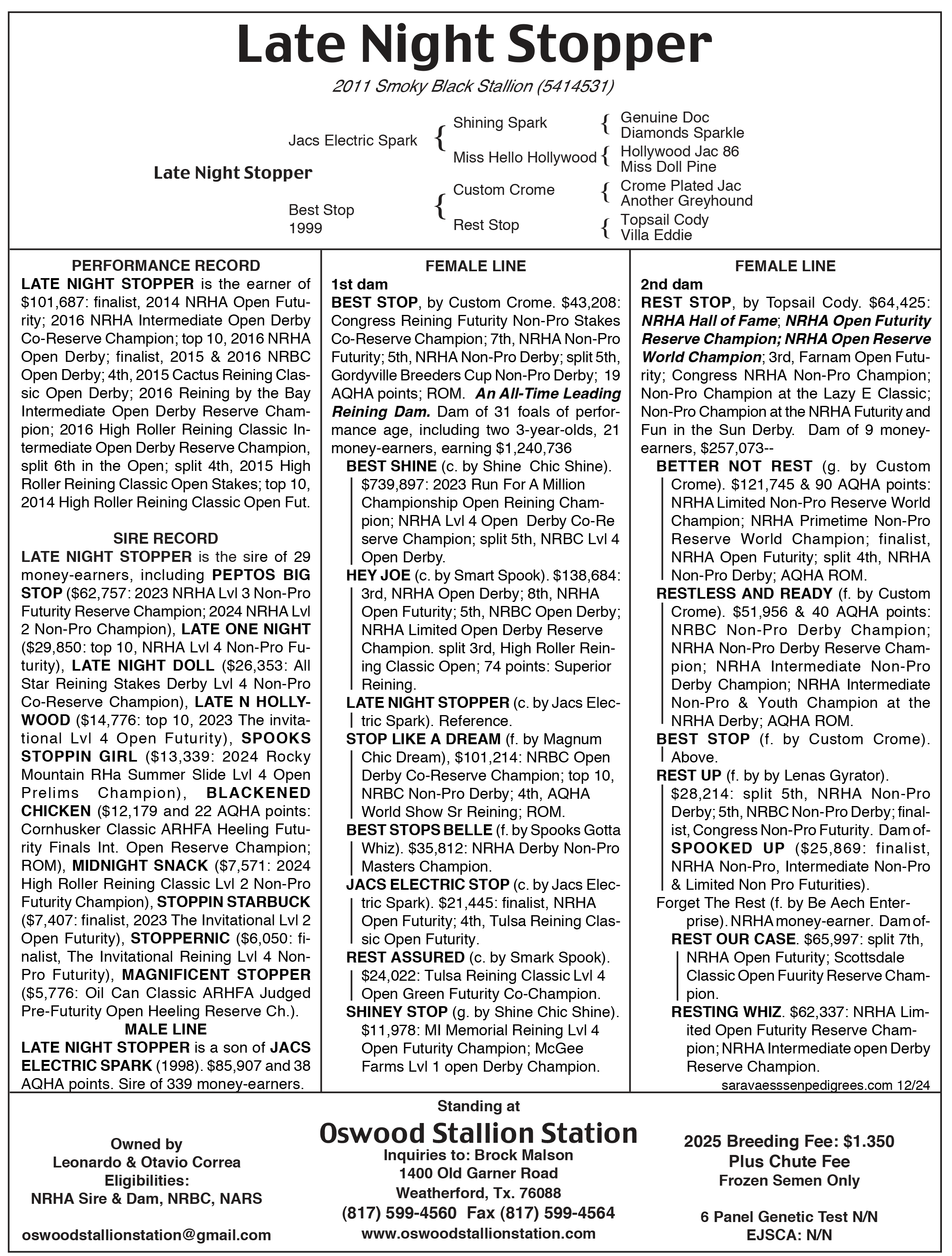 If stallion has early booking discount, ALL fees are due with contract submission. A 3.5% credit card processing fee will be included in the final total. Be sure to review your contracts additional terms & email us your mare’s registration papers if not already on file: oswoodranchoffice@gmail.com
