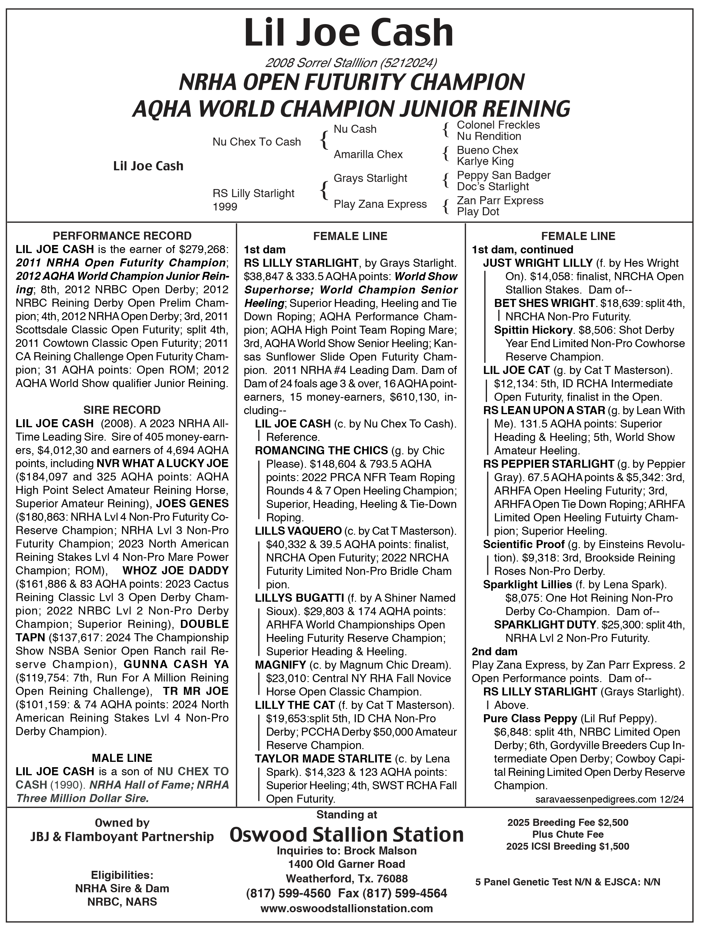 Standing at Oswood Stallion Station, Weatherford, Texas