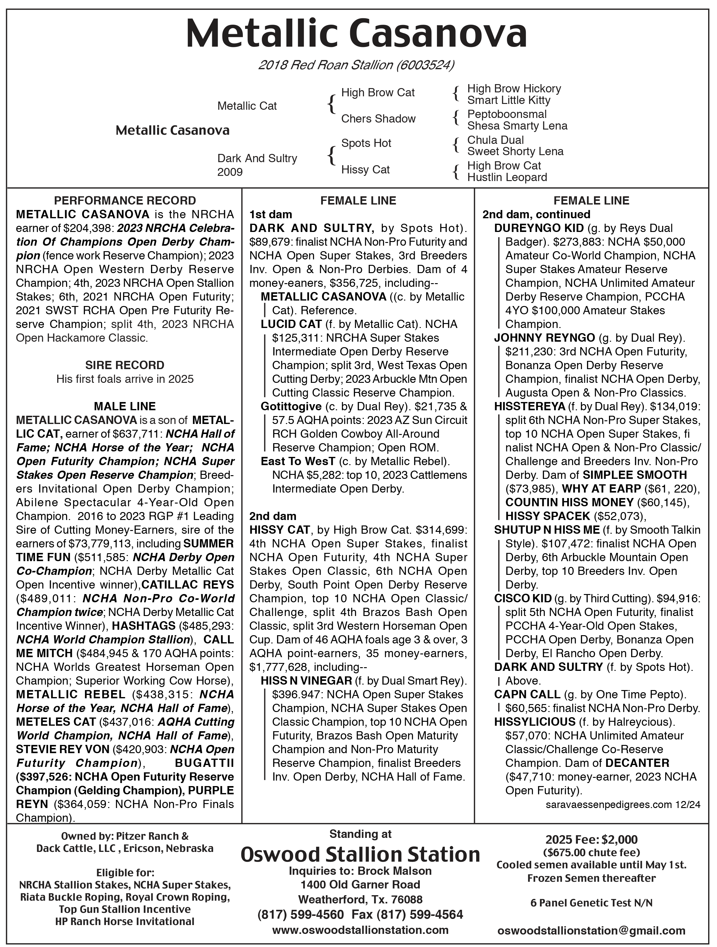 Standing at Oswood Stallion Station, Weatherford, Texas