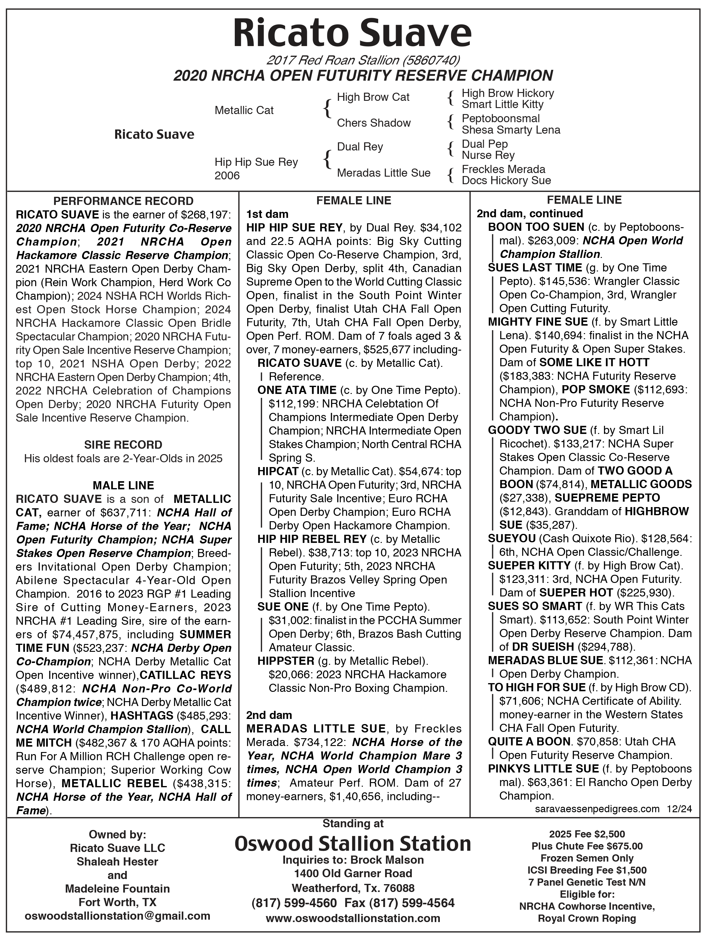 If stallion has early booking discount, ALL fees are due with contract submission. A 3.5% credit card processing fee will be included in the final total. Be sure to review your contracts additional terms & email us your mare’s registration papers if not already on file: oswoodranchoffice@gmail.com